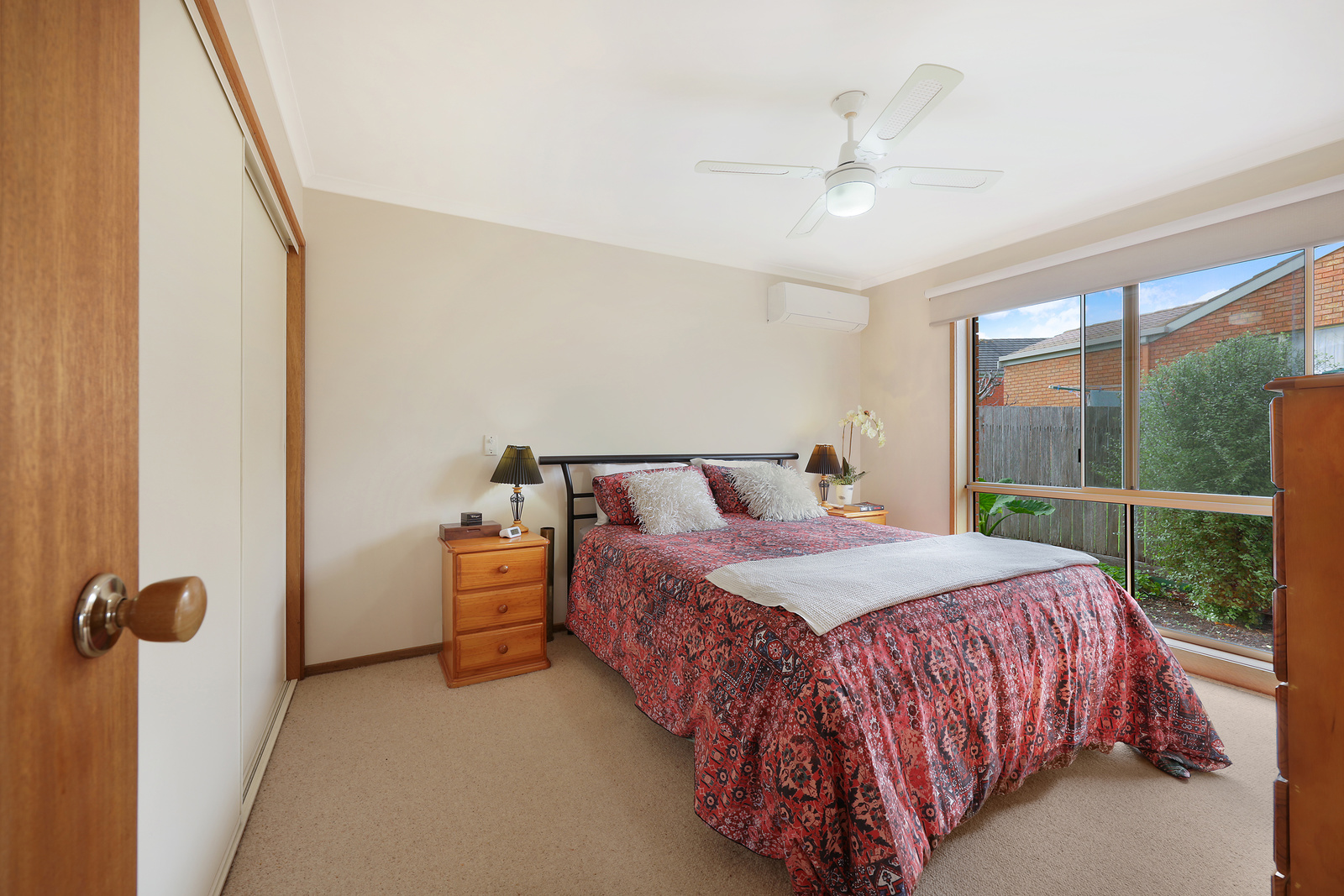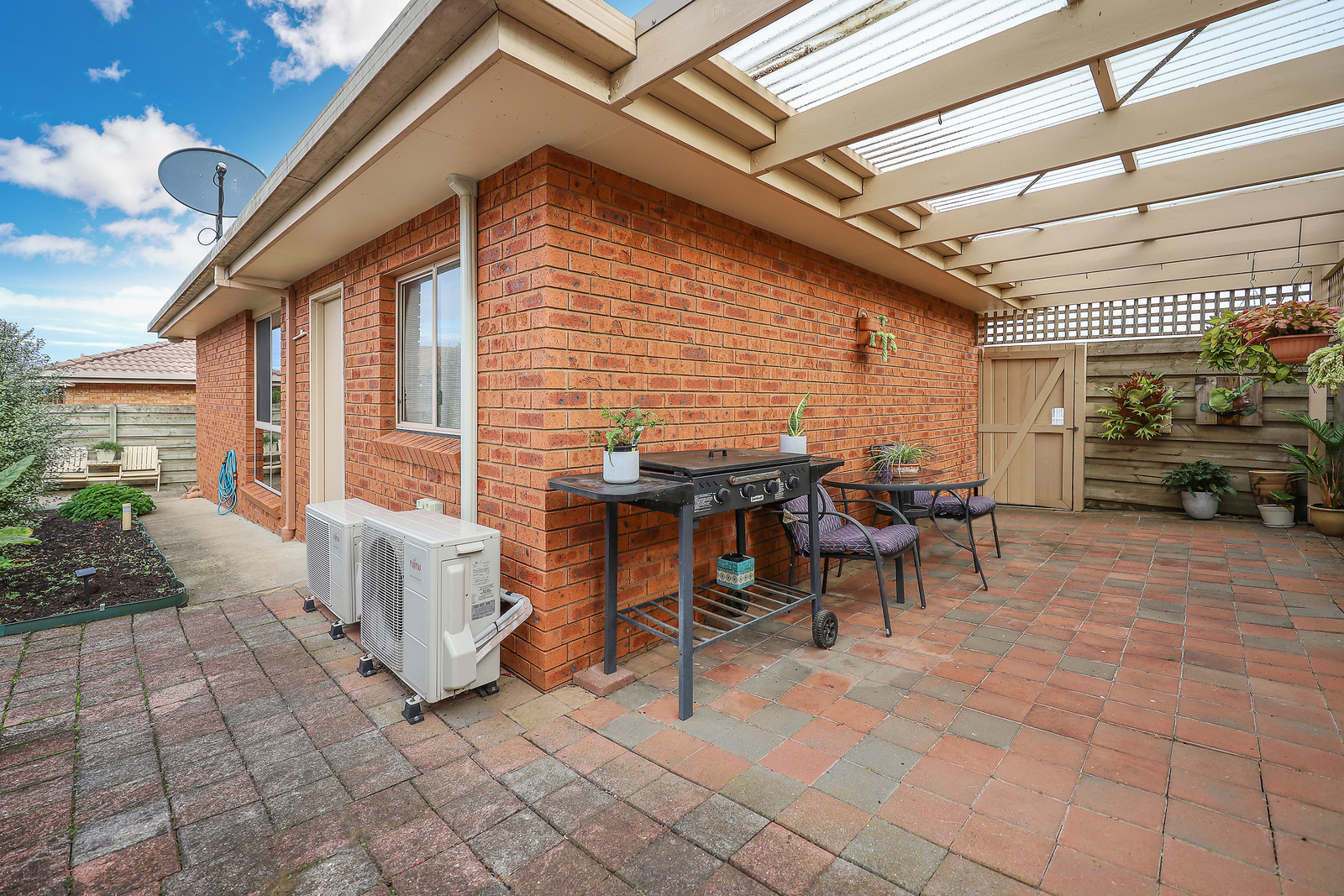 A cozy and functional layout, this unit offers comfortable living spaces with plenty of natural light. The open-plan living and dining area provides a welcoming space for relaxation and entertainment. The well-appointed kitchen is equipped with electric cooking and ample storage. Both bedrooms are generously sized and include built-in robes, providing convenient storage solutions. The bathroom is neat and tidy, with a shower, bath, and vanity. Other features of this unit include a separate gas, ceiling fans, split systems, and a single remote garage.
