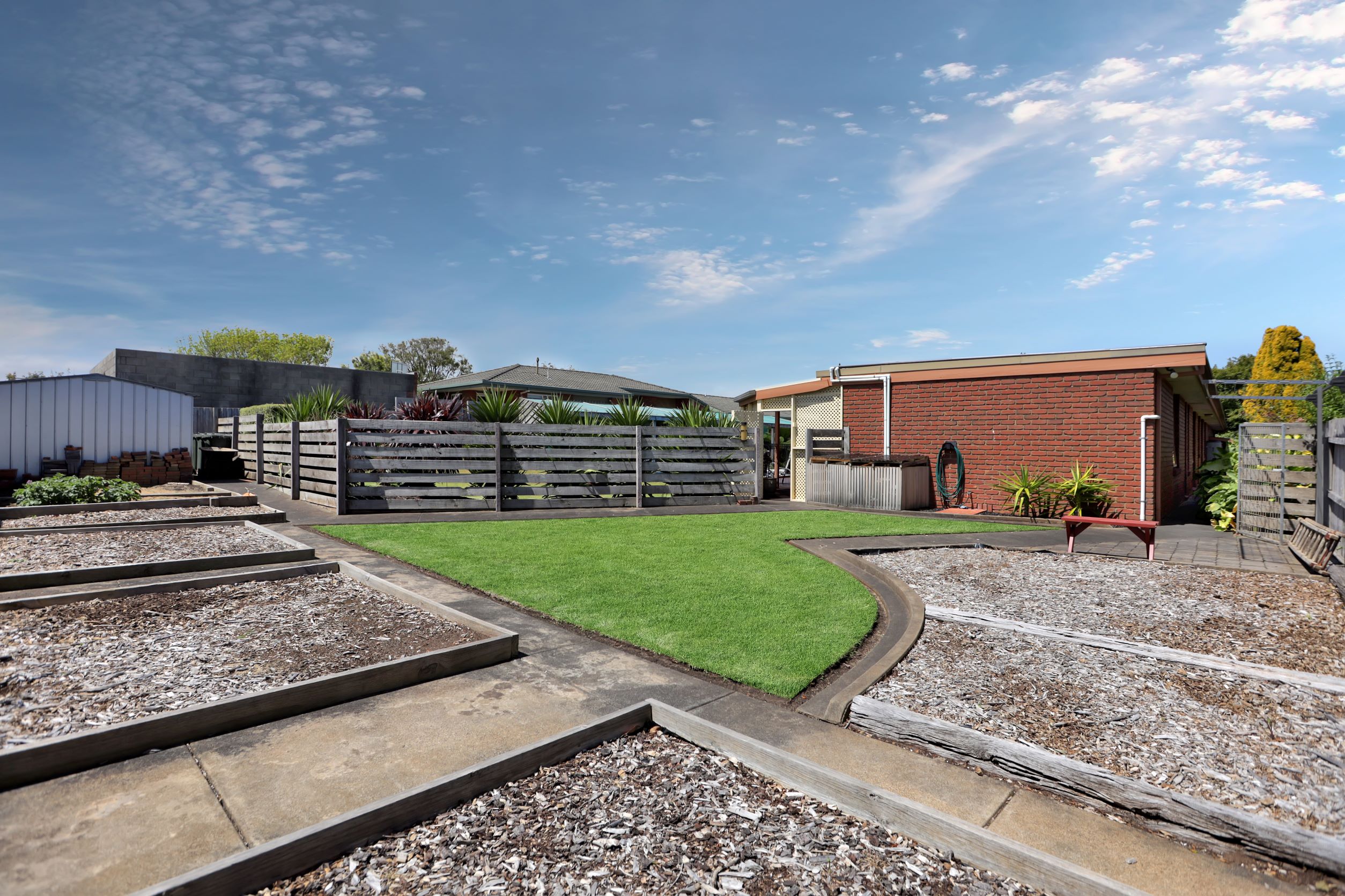 * Enclosed back yard * Garden shed