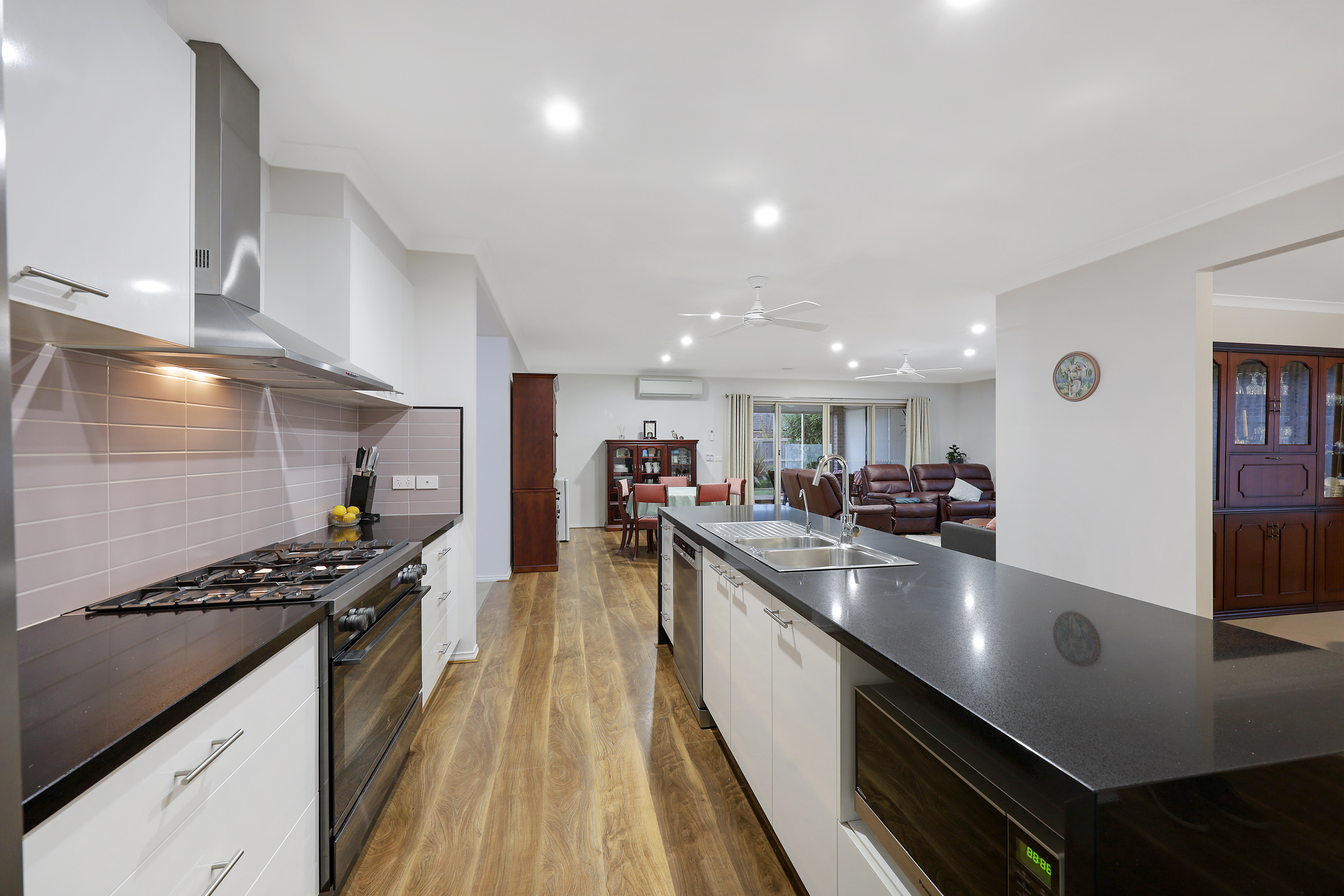 The elegant kitchen has a central island bench top and comprises a new stainless-steel cooker. A pantry offers abundant storage space.