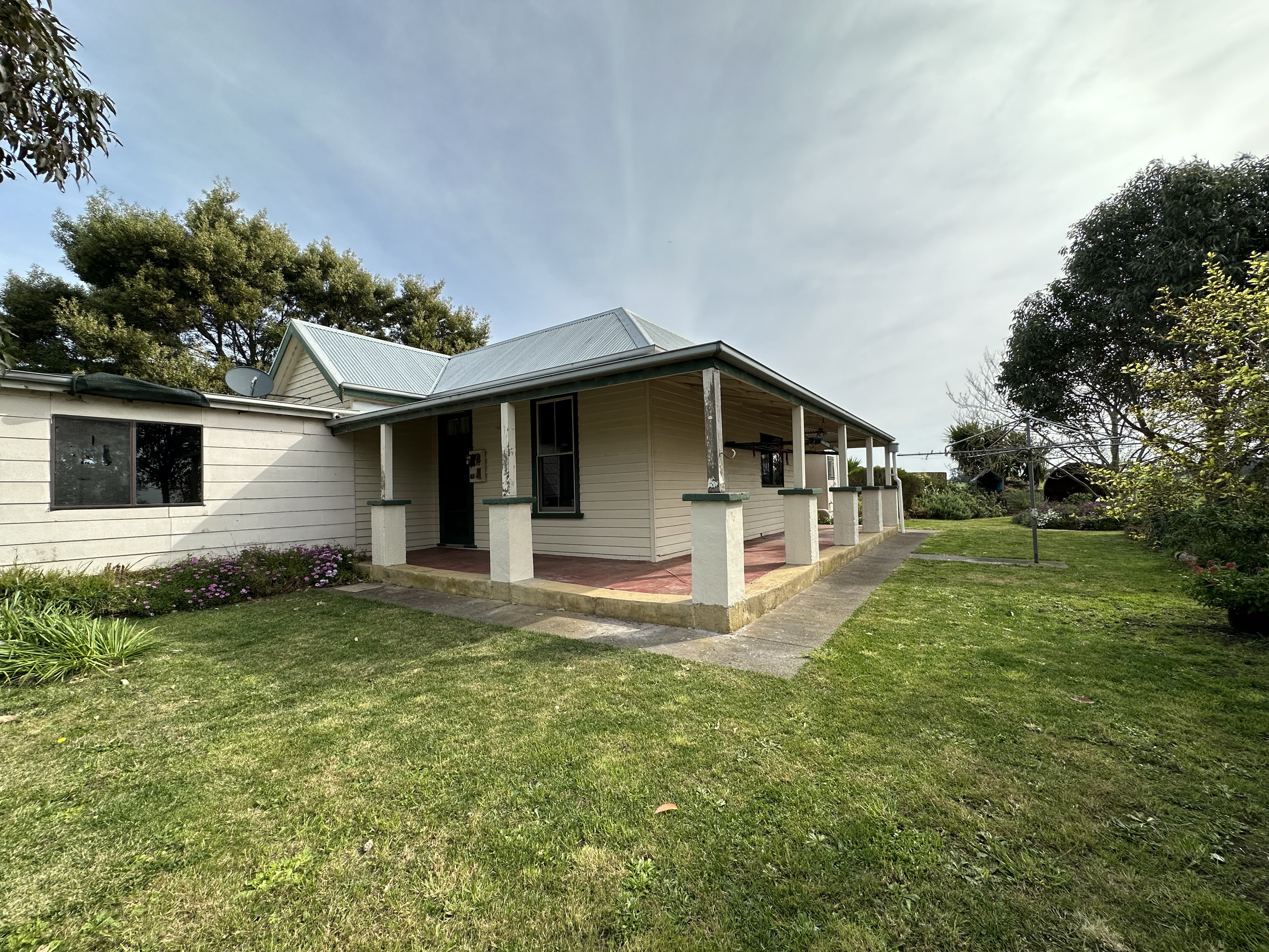 This large home comprises of 3 good sized bedrooms (2 with built in robes). Kitchen/dining with ample cupboard space and electric cooking. Spacious living area with split system and wood heater. Main bathroom with shower over bath. Separate laundry. Property is on tank water and septic system.