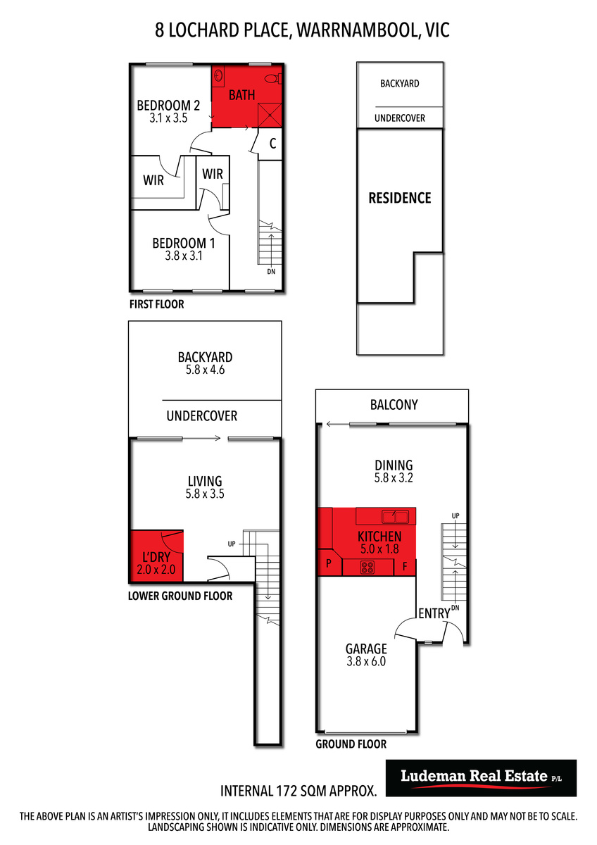 This property features a two-bedroom brick veneer built over three levels and all on its own tittle, both bedrooms with BIRs, semi-ensuite bathroom with bath, separate shower recess and vanity, open plan kitchen and family/dining room with balcony facing north, quality stainless steel cooking facilities, d/w, large living room with direct access to paved rear yard. Two split systems. L/U garage with direct access to entry.