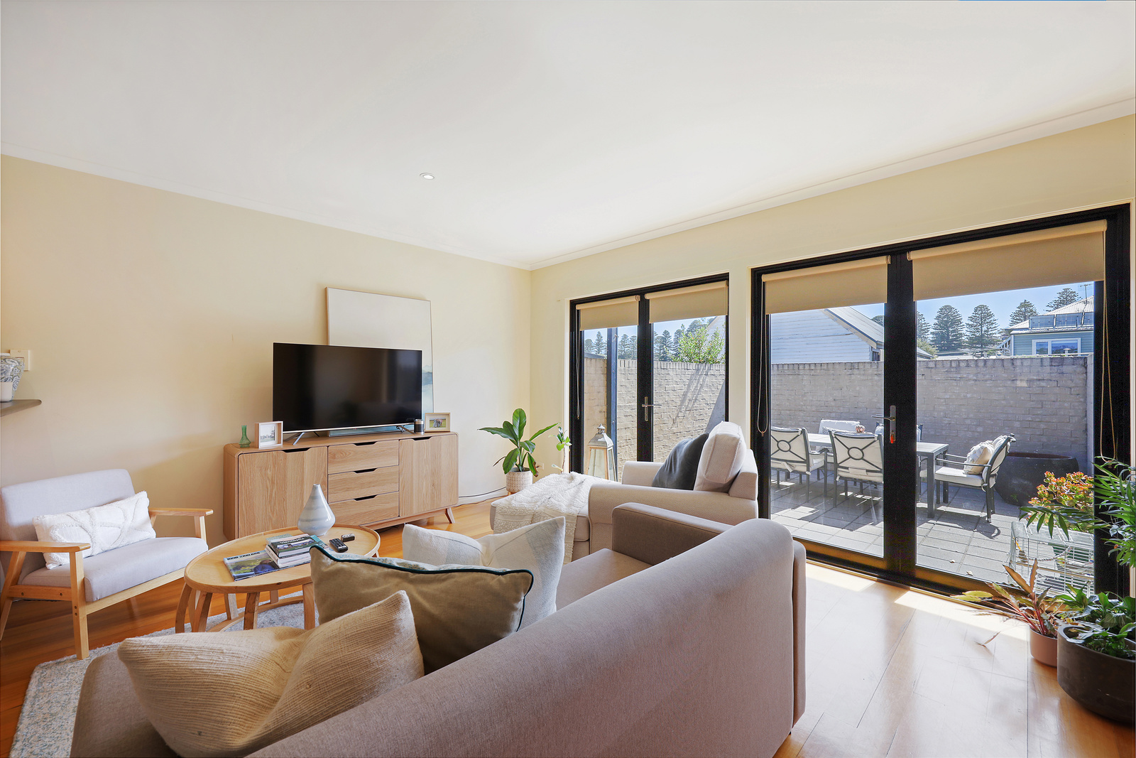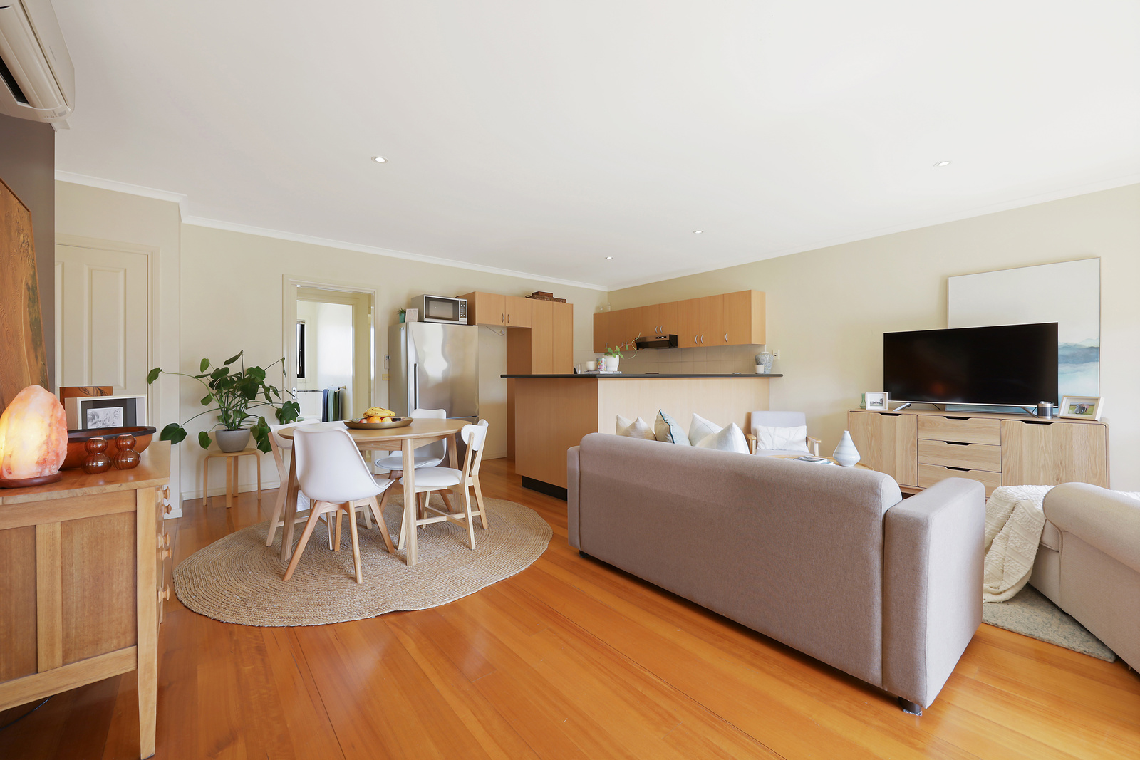 This low-maintenance townhouse offers a spacious open-plan layout with a modern kitchen, dining and living area, complete with split system heating/cooling and stylish floorboards. The kitchen features stainless steel appliances, electric cooking, and plenty of cupboard space. The bathroom includes a shower, bath and vanity, while both bedrooms are fitted with built-in robes. Enjoy a sunny north-facing front courtyard, plus a small enclosed yard at the rear. The property also includes a single remote garage with internal access.
